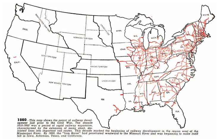 Map Of Us Railroads In 1850